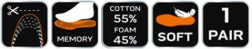 Είναι κατασκευασμένοι από 55% βαμβάκι και 45% πολυεστέρα και διαθέτουν επικάλυψη αφρού Memory, η οποία προλαμβάνει την εμφάνιση κάλων και βοηθά στη σωστή λειτουργία των ποδιών.